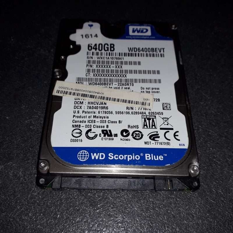 Disque dur 2.5″ Sata Western Digital 640Go Modèle WD6400BEVT