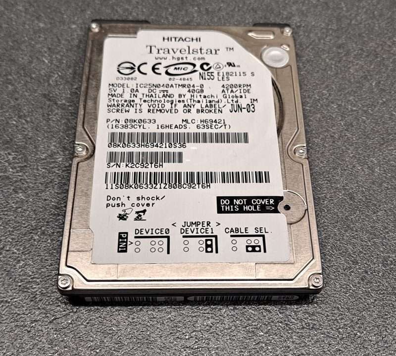 Disque dur Hitachi 2.5″ IDE IC25N040ATMR04-0 – PCB 320 08K1794 01 – MLC H69421 – 40Go